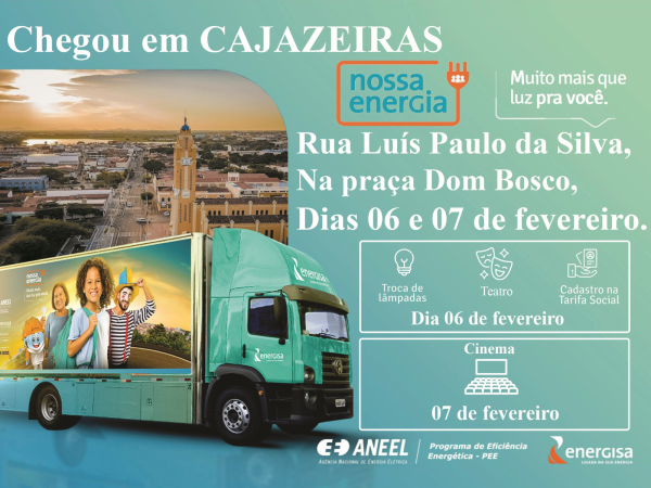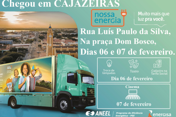A Prefeitura Municipal de Cajazeiras, por meio da Secretaria de Desenvolvimento Humano, em parceria com a Energisa, está levando o Projeto Nossa Energia aos bairros da cidade, com troca de lâmpadas, cadastro de tarifa social, palestras educacionais, apresentação teatral e exibição de filmes.