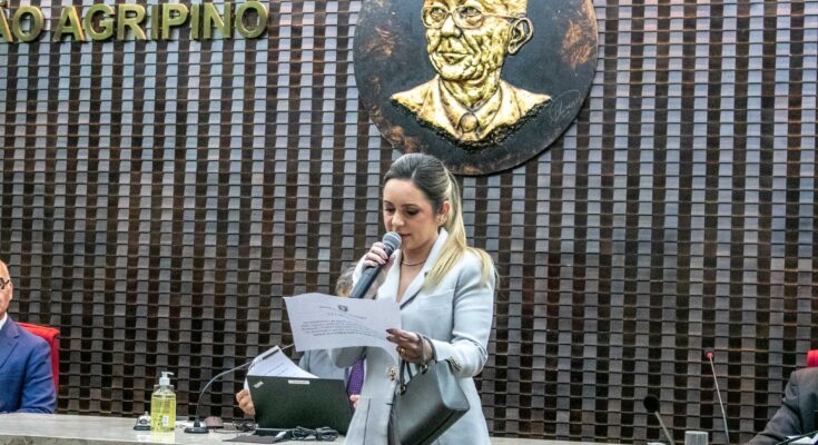 O Tribunal de Contas do Estado empossou, nesta quarta-feira (30), em sessão extraordinária, a bacharela Alanna Camila dos Santos Galdino, primeira mulher a assumir o cargo de conselheira na Corte paraibana. A posse ocorreu, imediatamente, à sessão ordinária que aprovou, por unanimidade, o processo que analisou a investidura no cargo, após ter sido indicada pela Assembleia Legislativa e nomeada pelo governador do Estado para assumir a vaga aberta com a aposentadoria do conselheiro Arthur Cunha Lima.