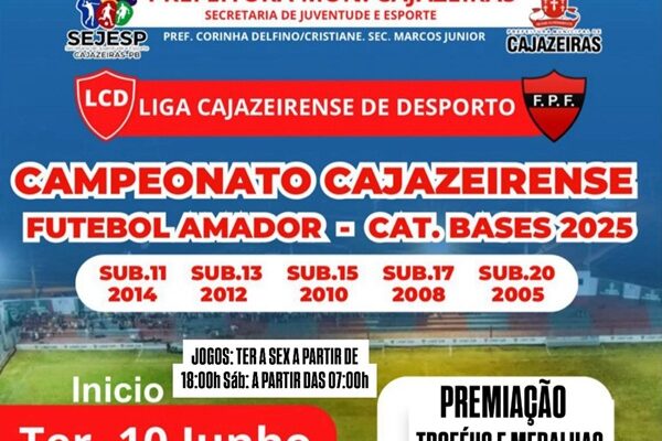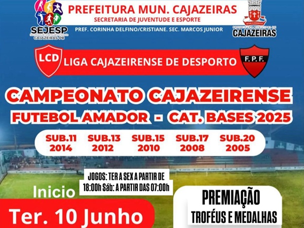 A Prefeitura de Cajazeiras, por meio da Secretaria de Juventude e Esporte, dá início nesta terça-feira (10) ao Campeonato Cajazeirense de Futebol Amador de 2025, para as subcategorias 11, 13, 15, 17 e 20 anos.