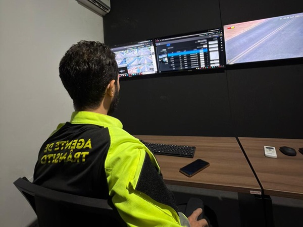 Diariamente, um agente permanece de plantão na Central de Monitoramento, acompanhando a movimentação do trânsito e realizando a autuação das infrações constatadas.